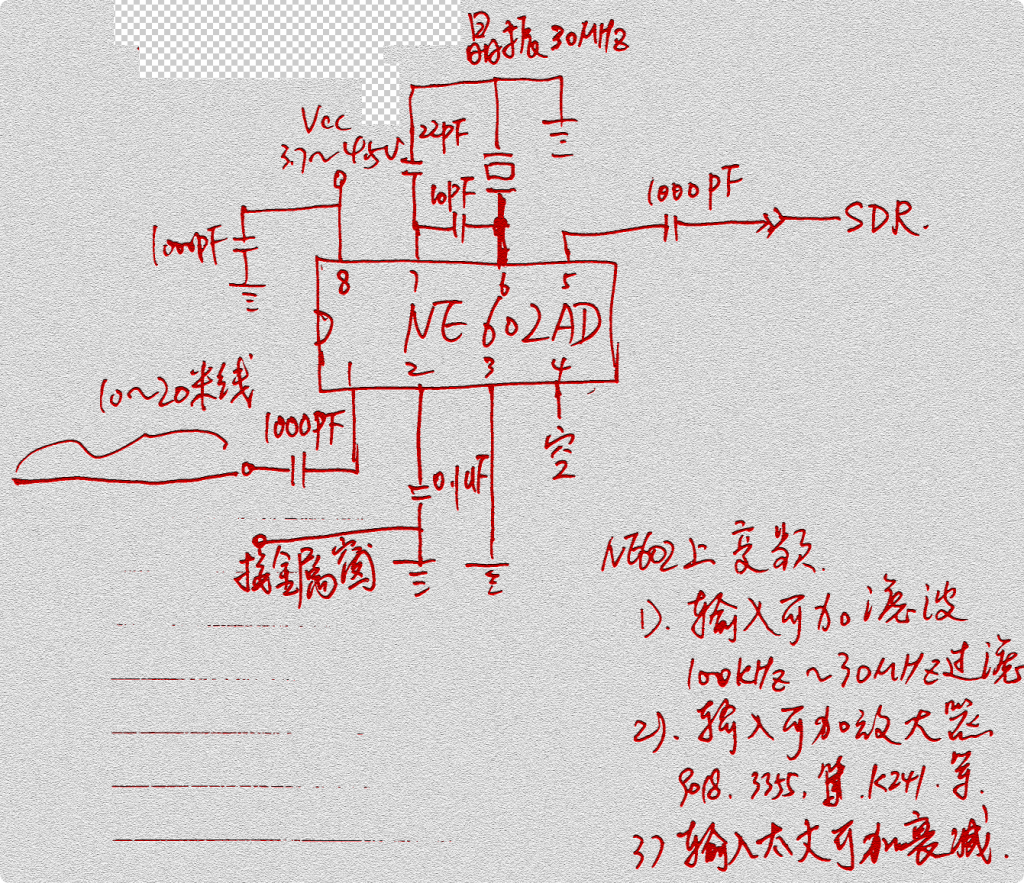 初步总结:rtl–sdr用一根天线收听有好几个问题。1.长线天线在不同频率的阻抗差异太大,从几十欧姆到数千欧姆。需要精准的阻抗变换。另外NE602做上变频的话,它输入阻抗是1k到1.5k,这个需要精准匹配才行,输出也需要匹配到sdr的50或者75欧,不是随便混频出和频就行。2.前级缺少窄带滤波势必很多信号同时进入,影响效果,特别是混频后各种差频和频还有晶振倍频产生的一些东西必须精准过滤。3.某些频率点信号强度不够,需要LNA放大后再接收。信号太小dsp和电视棒的效果都很差,而且它内部无能为力。