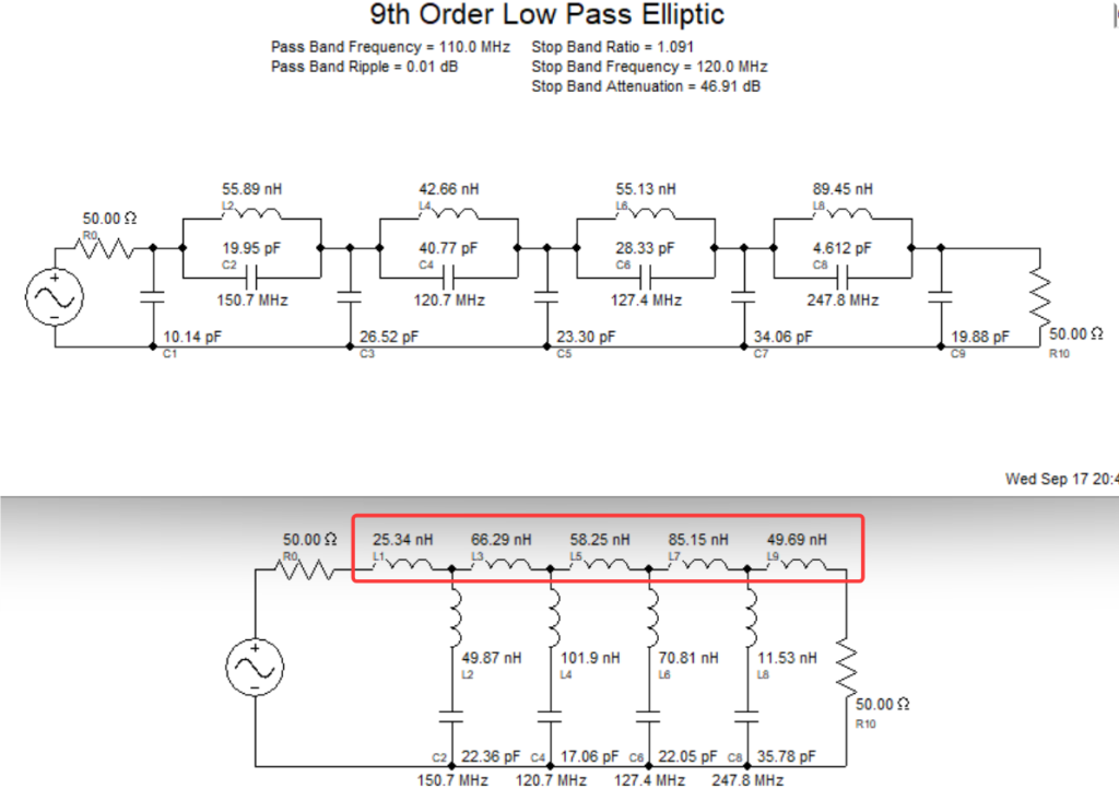 其实上图,左半部分为低通,右半部分为高通,合起来组成一个带通。