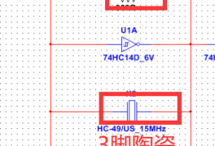 1脚输入端并接102pF电容,停振,给振子串电容能微调起振的频率。如果电容很大,接近465k,如果电容很小,基频到1.5Mhz左右。