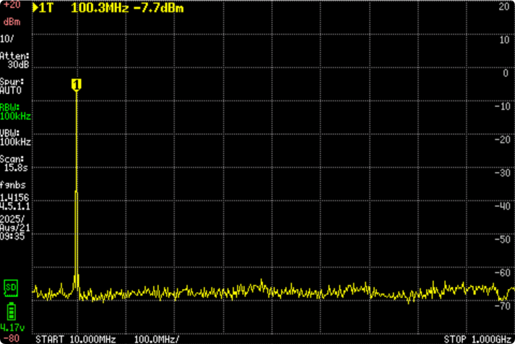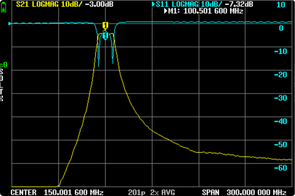 仍然是之前的三阶100Mhz带通滤波器,因为点胶造成偏差,把胶去除后,重新调试。