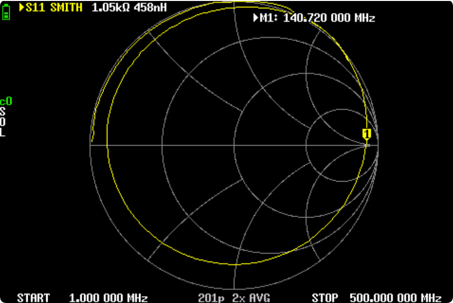 SMITH,接近最右的点。达不到理论的无穷大阻抗。