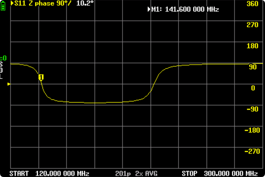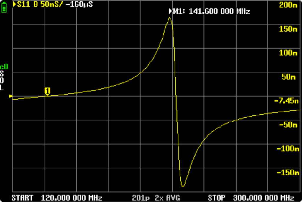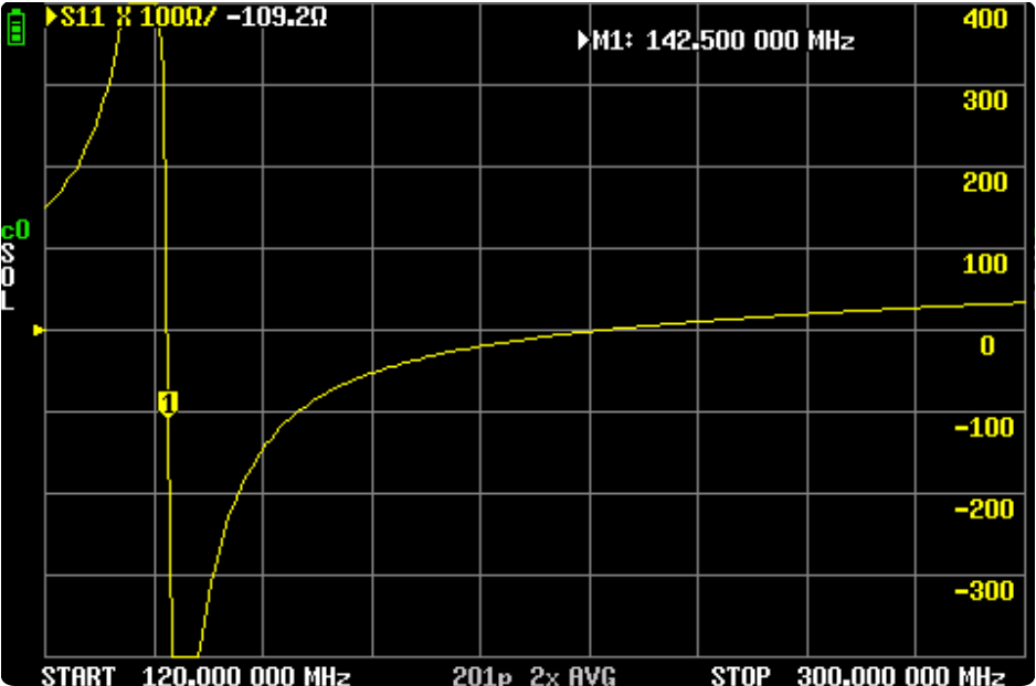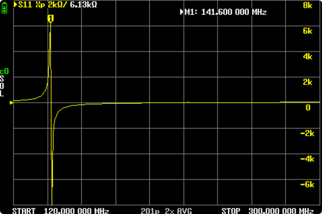 电抗,在过零点为谐振频率。扫描电视的问题,M1有点偏。