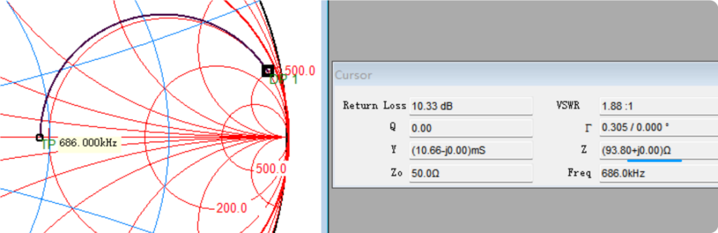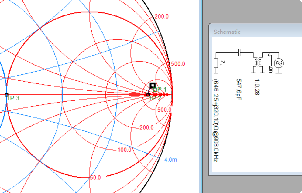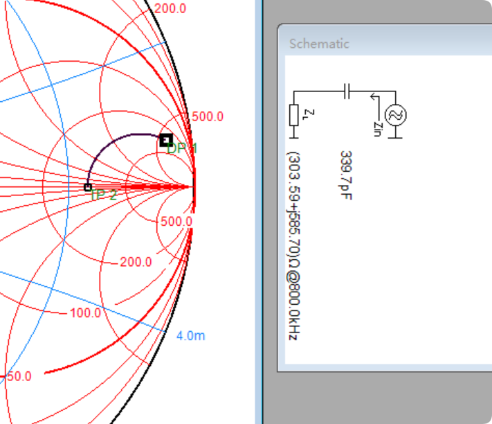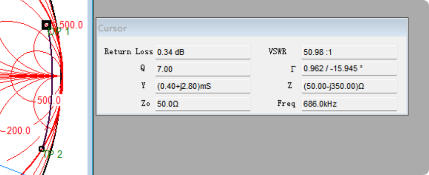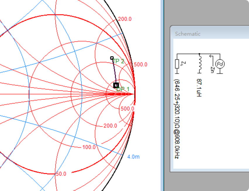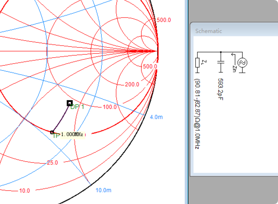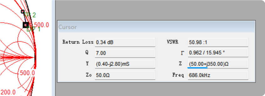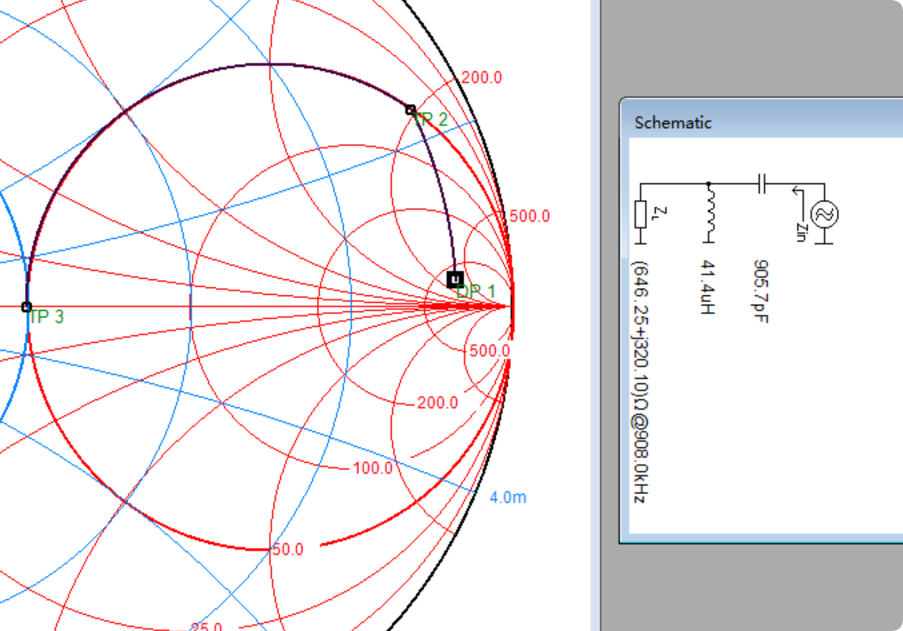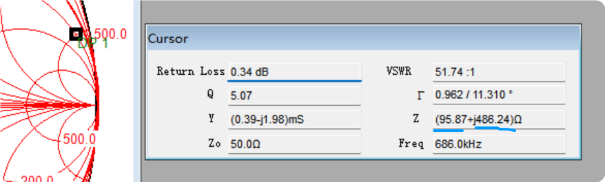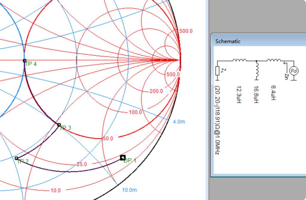 3)对于初始点太靠近虚部=0的直线时,如果先改变阻抗。则很容易改善,比如这个从27到1.9。这种情况收音机来说,已经可听,不再需要电感电容。(不过显示是,阻抗变化用的是线圈,也会引入感抗,实际调出来不会这样理想)