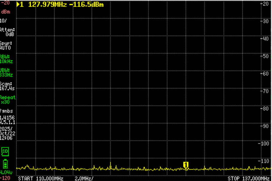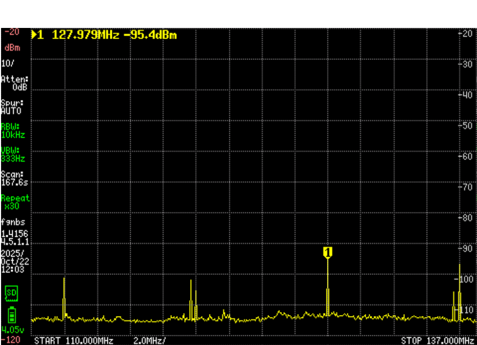 这个范围的干扰是很小的。因为强制航空安全的需要。可以看到这一个波段没有杂散。杂散不敢到这里来。这样的质量为本波段的远程接受和放大提供了条件。