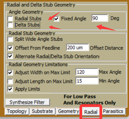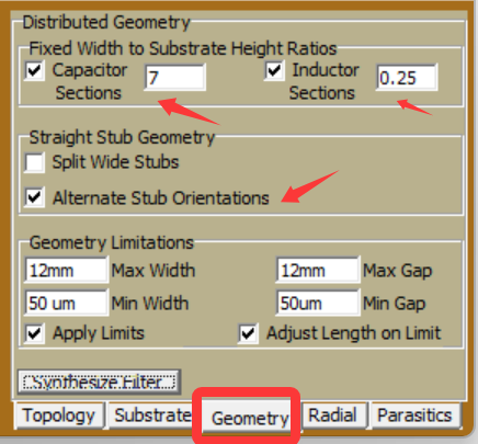 中间的箭头是说把电容均布在微带线的两边。这样只要目的就是一个,sma接口可以在比较中间的位置。整体比较对称。